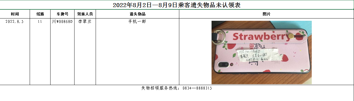 2023年11月2日—11月9日乘务员丟了商品未认领表