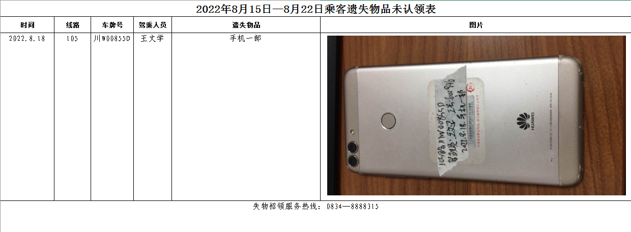 2020年4月14日—4月22日列车员损毁违禁物品未认领表