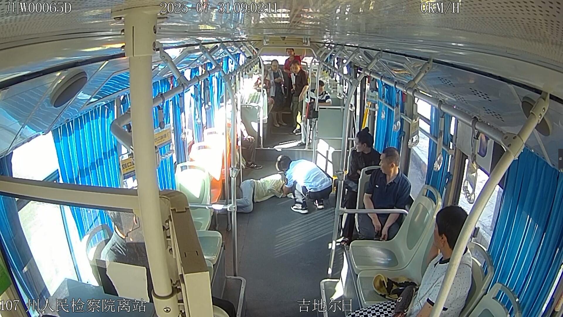 7月31日,西昌市107路公交车上演了惊险而温暖的一幕。上午9时,107路川W00065D号公交车平稳行驶至州检察院站点时,车厢内一名乘客突然从座位上无声倒下,失去意识。这一瞬间,平静被打破,一场与时间的赛跑却随之开启。